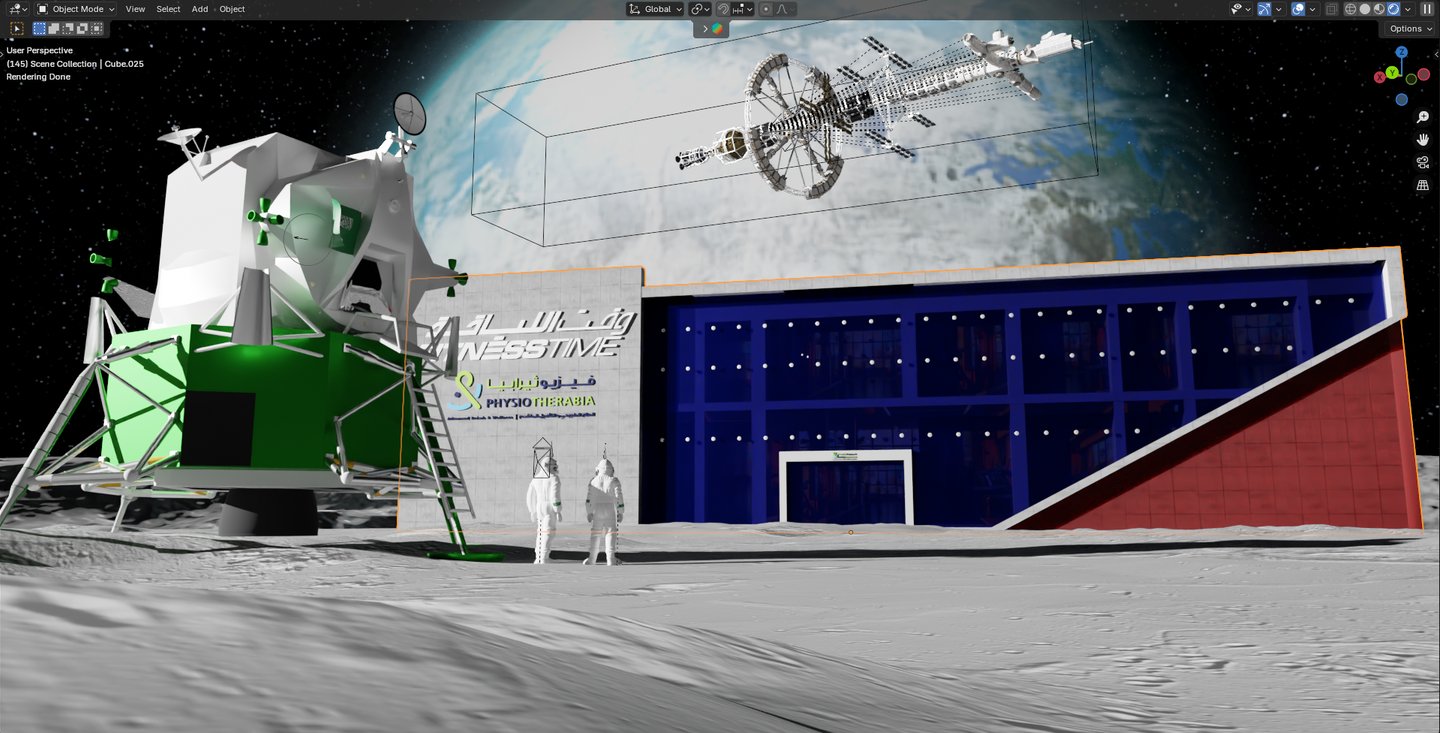Modeled the company’s headquarters on the moon, complete with branding and realistic surface textures.